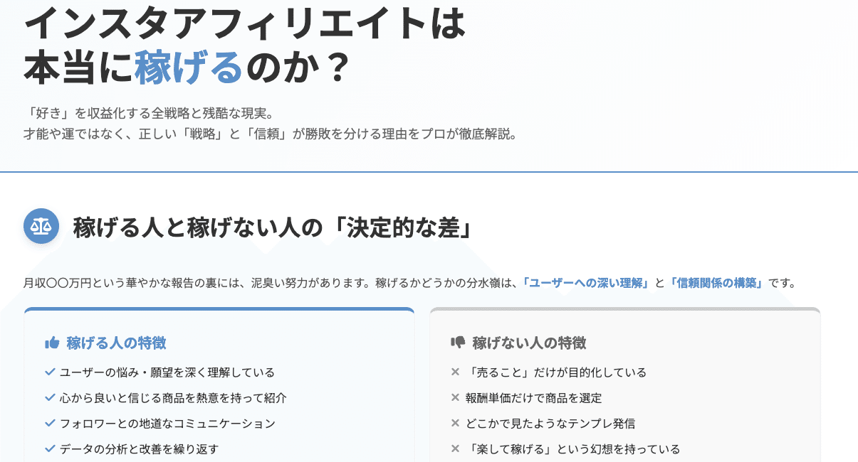 この記事を読み終える頃には、あなたはインスタアフィリエイトの本質的な知識を身につけ、自分にも挑戦できるのかどうかを、明確に判断できるようになっているはずです。