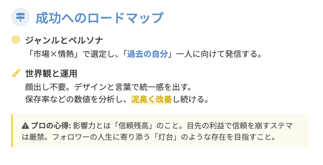 重要なのは、これらの収益化はすべて、日々の発信で積み上げた「信頼」を「価値」に変換するプロセスに過ぎないということです。
