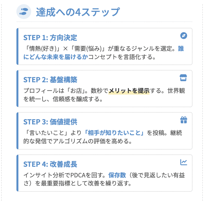 闇雲に投稿を続けるのではなく、戦略的に階段を登っていくことで、成功確率は飛躍的に高まります。