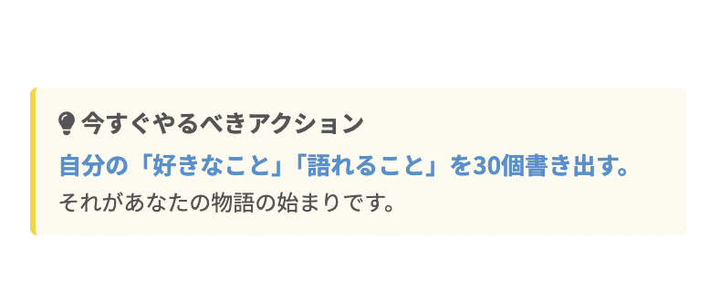 まずは、自分のスマートフォンにあるメモアプリを開き、「自分が好きなこと」「これまでの経験で語れること」「誰かの役に立てそうなこと」を30個書き出してください。