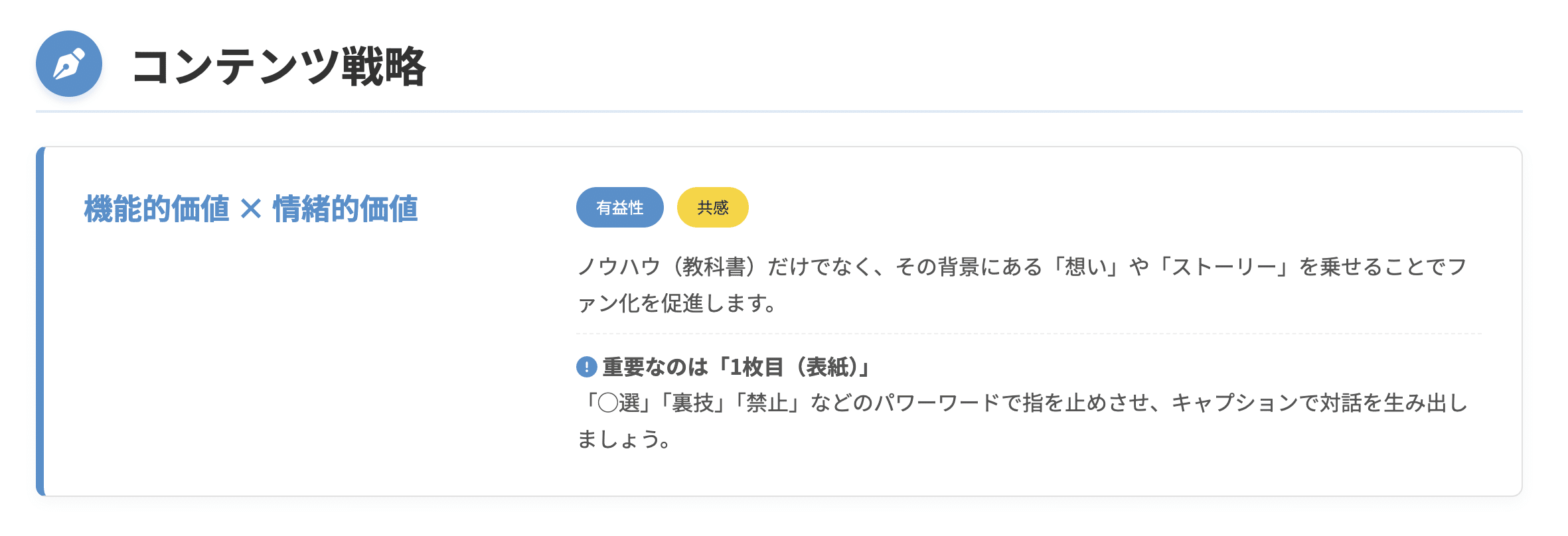 理想的なのは、具体的なノウハウを提供しつつ、その背景にある「なぜそれを伝えたいのか」という想いやストーリーを乗せることです。
