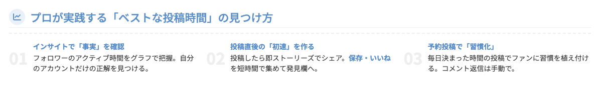 単なる時間の羅列ではなく、アルゴリズムの仕組みから逆算した本質的なノウハウをお届けします。