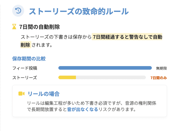 ストーリーズの下書きには、フィード投稿にはない「致命的なルール」が存在します。