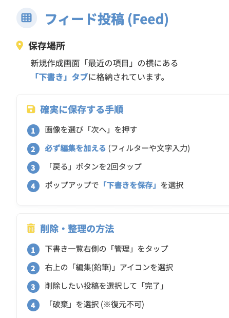 【フィード投稿編】下書きの保存場所と再編集・削除の完全マニュアル