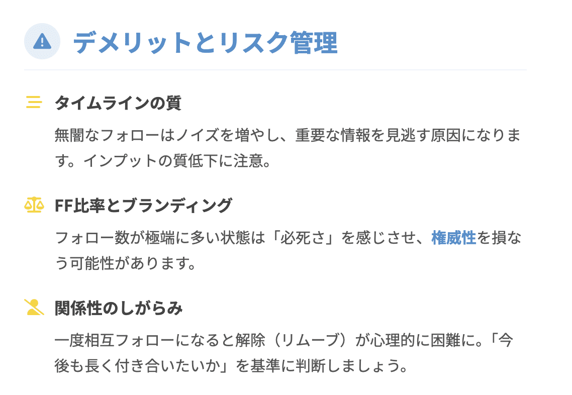 迷ったときは、アルゴリズムの損得勘定だけでなく、「この人と繋がりたいか」「この人の発信を見続けたいか」という自分の心に問いかけてみてください。