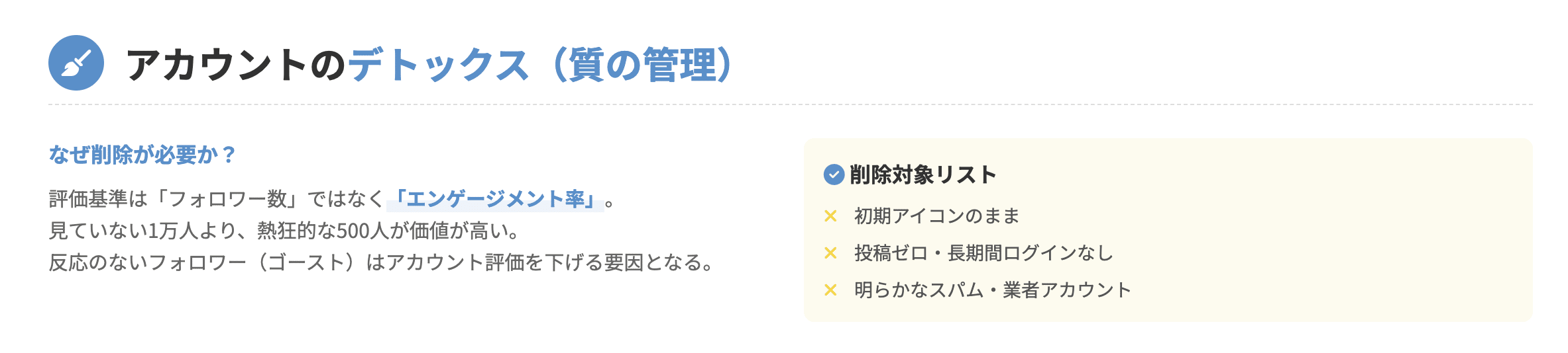 それは、「反応のないフォロワー(ゴーストフォロワー)」の削除という、少し勇気のいる決断です。