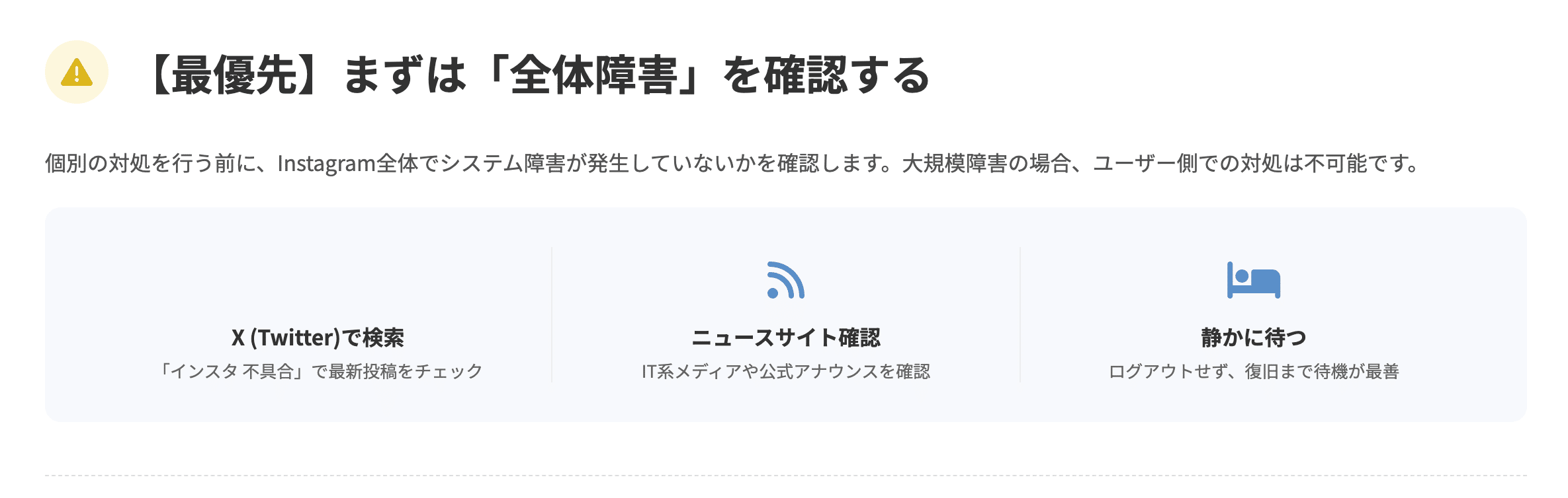 【最優先チェック】全てのトラブルシューティングの前に!インスタグラムの障害情報を確認
