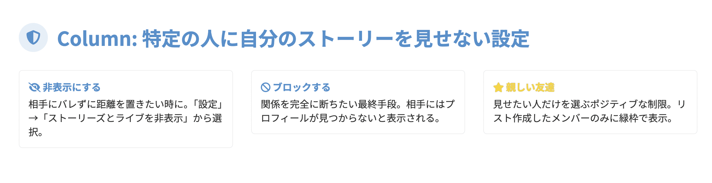 【プライバシー完全ガイド】特定の人にだけ自分のストーリーを見せない方法:3つの設定を使いこなす
