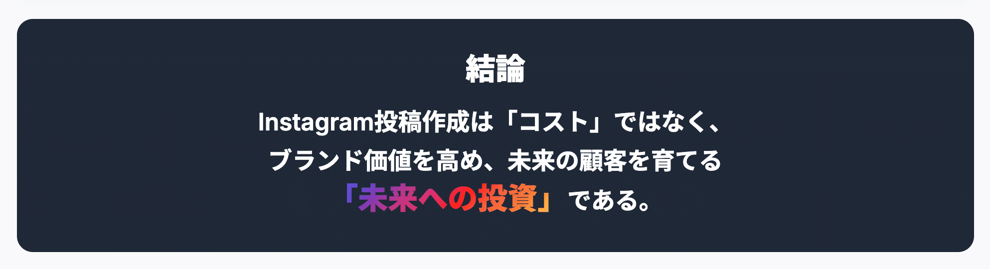 まとめ:Instagram投稿作成は「コスト」ではなく「未来への投資」である