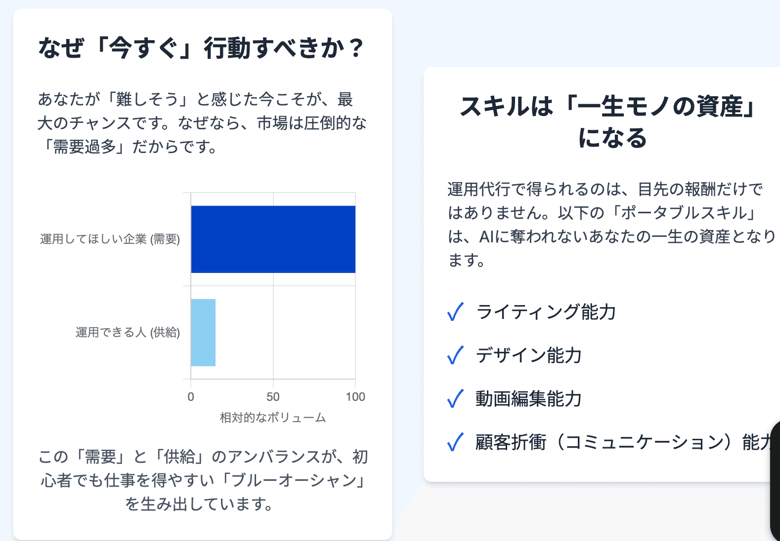 唯一のハードルは、企業やお店と直接やり取りをし、「運用代行をお願いします」と言ってもらう必要がある点ですが、心配は無用です。