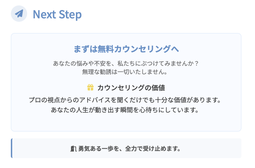 あなたの人生が動き出す瞬間に立ち会えることを、心から楽しみにしています。