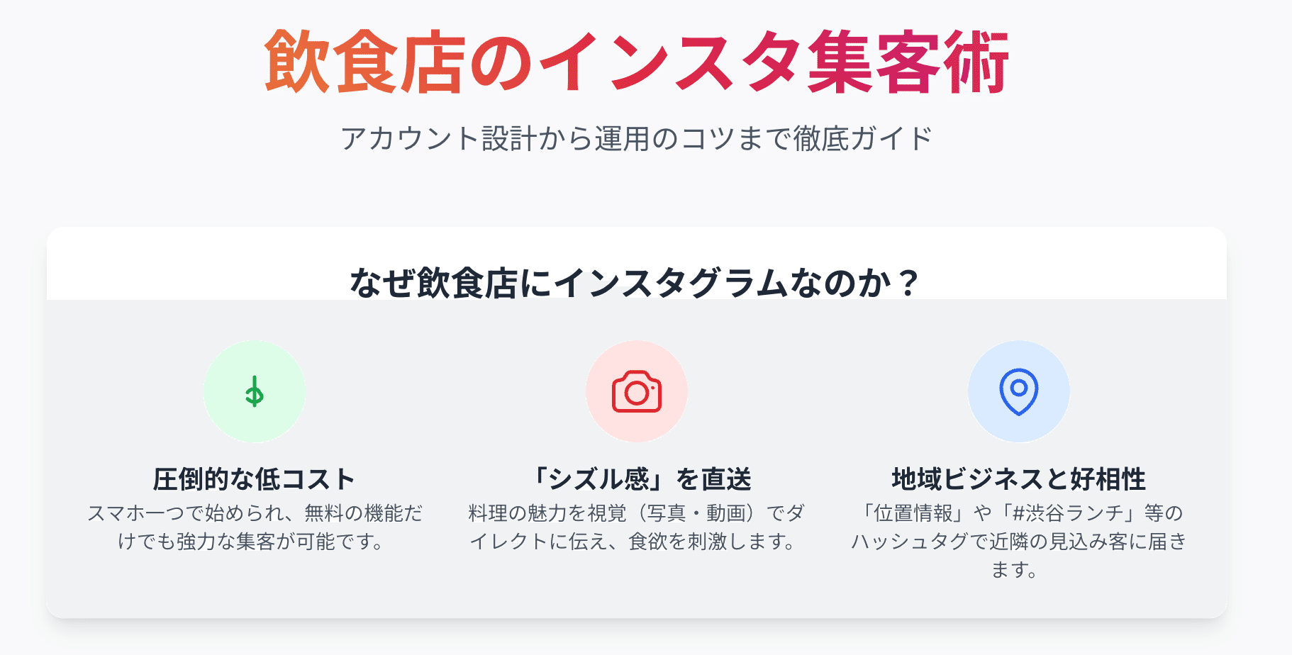 インスタグラムは、現代の飲食店経営において最も強力かつ低コストで、新規のお客様にアプローチできる集客ツールの一つです。
