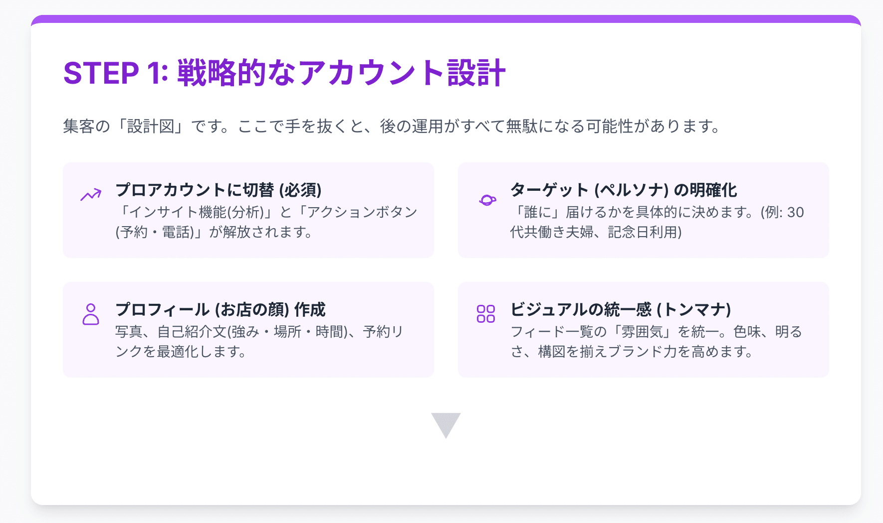 この章では、単なる機能設定に留まらない、集客というゴールから逆算した戦略的なアカウント構築の方法を、順を追って詳しく解説していきます。