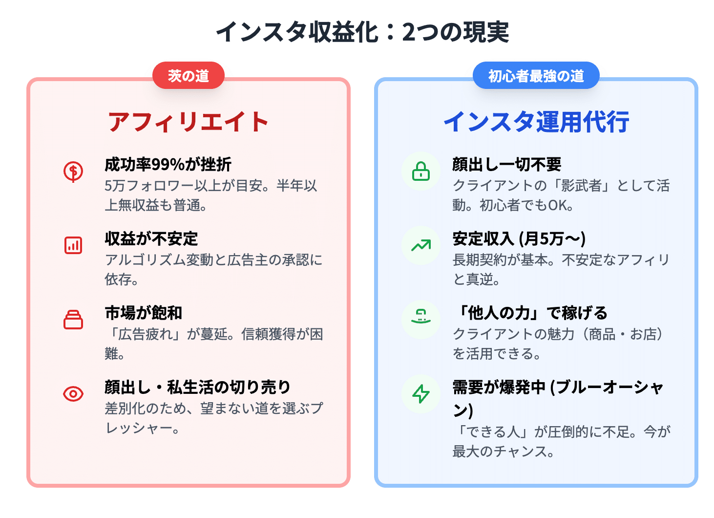 今日、私がお話しするのは、アフィリエイトとは全く異なる、もう一つの収益化の道、「インスタ運用代行」という選択肢です。