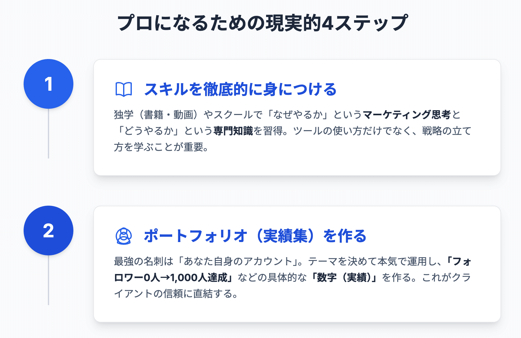 フリーランスには、「SNS運用の専門スキル」と、「仕事を獲得するための営業スキル」という、二つの異なるスキルが求められます。