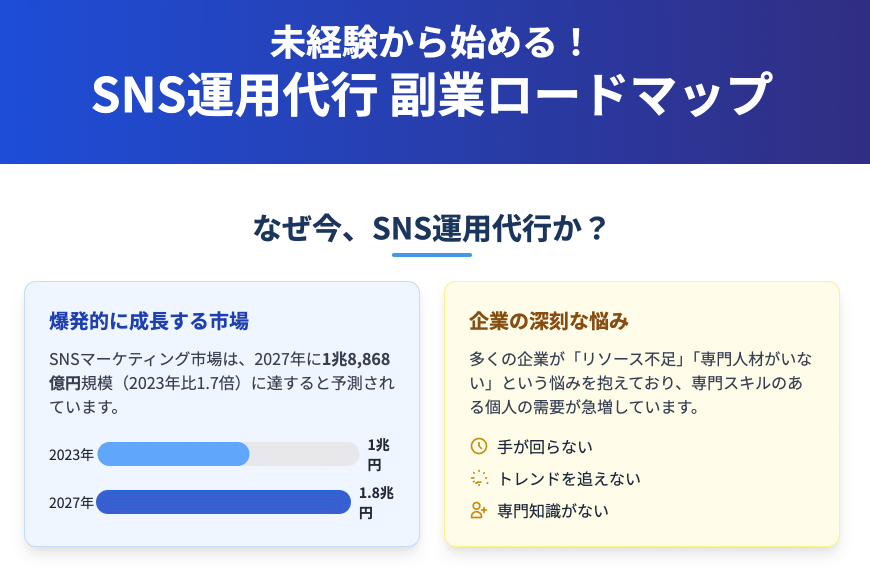 私が未経験から副業としてSNS運用代行を始め、どのようにしてクライアントから信頼を得て、収入の柱の一つに育て上げていったのか、その**実体験(Experience)**に基づいた具体的なステップと、業界の「今」(2025年最新情報)を余すところなくお伝えします。