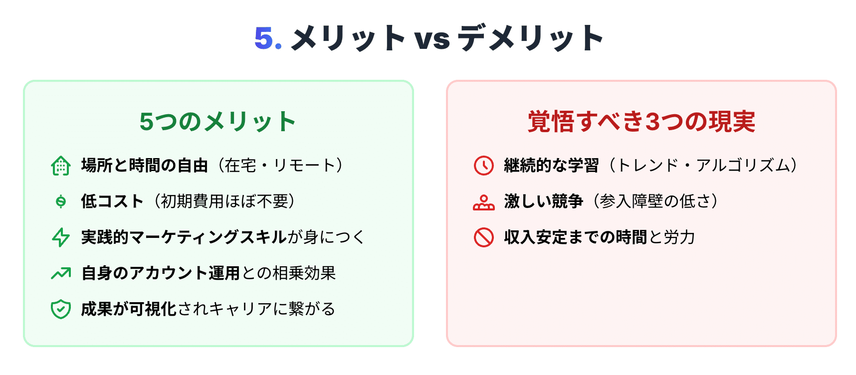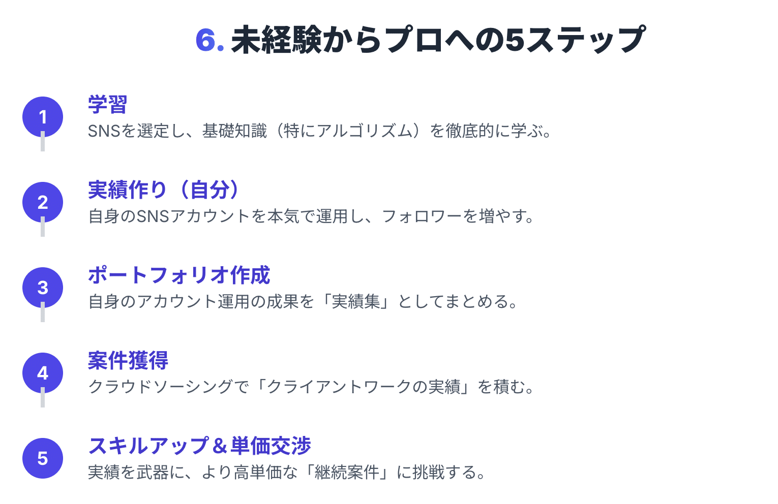 この「自分のアカウントを育てる」という一見遠回りに見えるステップこそが、結果として未経験からプロフェッショナルへと駆け上がるための、最短の近道なのです。